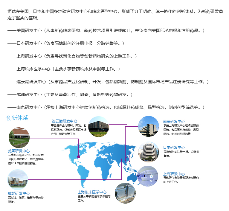 在市場競爭的實踐中,恒瑞醫藥堅持以創新為動力,打造核心競爭力。公司近年來每年投入銷售額15%左右的研發資金,2019年累計投入研發資金39億元,占銷售收入的比重達到16.7%。公司在美國、歐洲、日本和中國多地建有研發中心或分支機構,打造了一支3400多人的研發團隊,其中包括2000多名博士、碩士及200多名海歸人士。近年來,公司先后承擔了國家重大專項課題44項,已有6個創新藥艾瑞昔布、阿帕替尼、硫培非格司亭、吡咯替尼、卡瑞利珠單抗和甲苯磺酸瑞馬唑侖獲批上市,一批創新藥正在臨床開發,并有多個創新藥在美國開展臨床。公司累計申請國內發明專利894項,擁有國內有效授權發明專利201項,歐美日等國外授權專利286項,專有核心技術獲得國家科技進步二等獎2項,中國專利金獎1項。