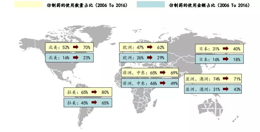 根據統計,2016年全球仿制藥市場規模達到2200億美元,2006-2016年全球各大藥品市場中,仿制藥的處方量和處方金額占比都呈現明顯提升。