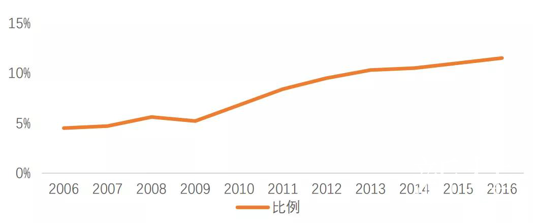 印度仿制藥的發展經歷了醫藥產品專利取消、并購浪潮、跨國合作+研發三大階段,因此它的仿制藥在世界的影響力是毋庸置疑的。目前印度的仿制藥藥品銷往全球包括美國、英國、德國等在內的數十個國家,其中美國更是印度仿制藥的最大進口來源國。根據Motilal Oswal調研數據顯示,印度仿制藥在美國仿制藥市場比例在不斷提高,從2006年的4.5%增長到了2016的11.5%。