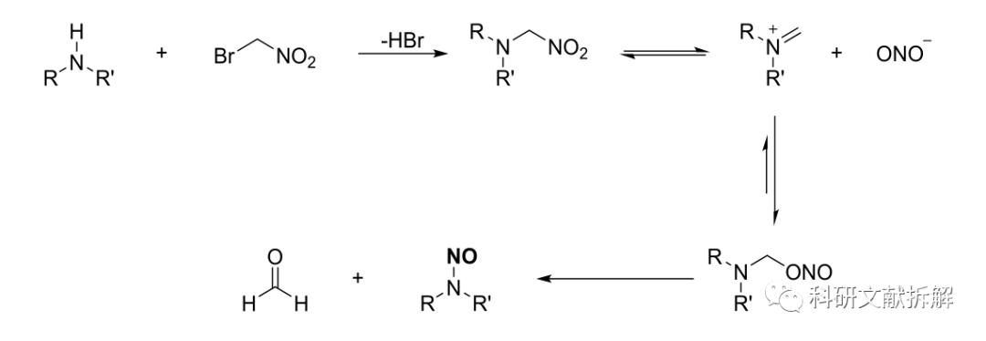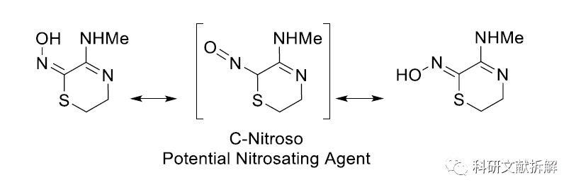 因此雷尼替丁中的NDMA產生途徑是:藥物結構中的硝基和二甲胺反應產生,至于反應機理,作者說還沒有研究明白。
