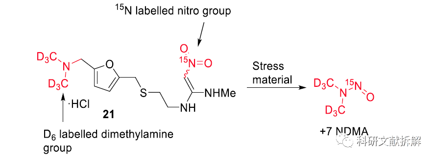 通過以上信息可知:雷尼替丁中的NDMA不是工藝過程引入,也不是降解的二甲胺氧化或者和其他亞硝化試劑共存產生。