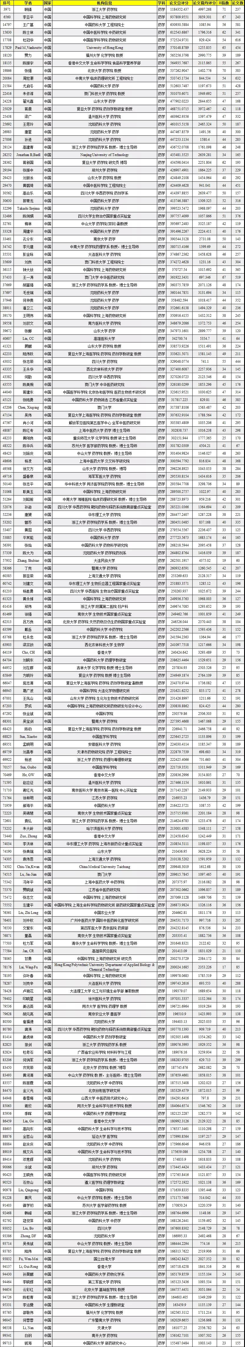 近期,全球學者庫,公開了全球頂尖前10萬科學家,其中,國內藥學175人(數據來源于全球學者庫):