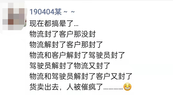 比如有些地方不斷加碼通行要求,導致在高速路口長時間滯留;多地拒絕上海牌照貨車進入,即便健康碼、核酸報告、抗原檢測和通行證都齊全仍被勸返或隔離;外地尤其是上海過來的貨車,下高速流程手續非常復雜,拍照、換證實際上都需要司機下車,存在比較大的接觸風險,登記完又封門不讓下車,實際上有些形式化;因有司機確診,多個高速服務區關閉,上海境內也多區封閉,司機只好停應急車道,好幾公里,很危險;同時,因沒有飯店和超市營業,滯留高速路和公路上的司機們無處購買食物和飲用水;有人天天啃方便面,啃得兩眼冒火星了。