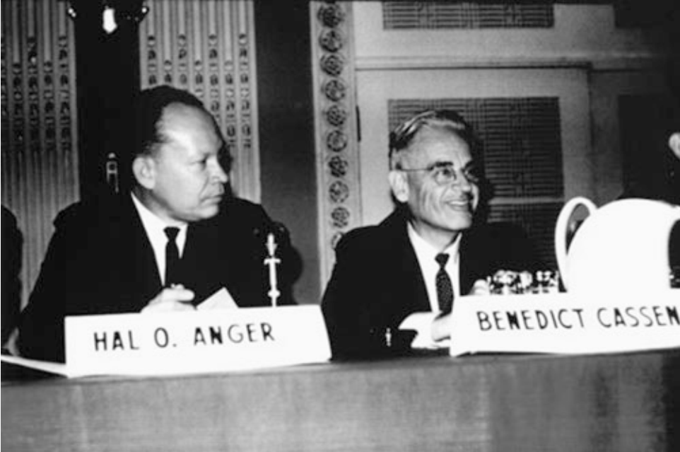 二戰(zhàn)后,原子彈的研制及其在第二次世界大戰(zhàn)結(jié)束時(shí)用于摧毀廣島和長崎,導(dǎo)致1946年成立了原子能委員會(huì)(AEC),以促進(jìn)核化學(xué)和放射化學(xué)的和平利用。原子能委員會(huì)的部分任務(wù),是推動(dòng)放射性核素在核醫(yī)學(xué)成像和治療中的應(yīng)用。1946年,宣布裂變產(chǎn)生的放射性核素,包括碘-131,可以立即從田納西州橡樹嶺的曼哈頓項(xiàng)目中獲得。來自AEC的資金推動(dòng)了幾個(gè)與核醫(yī)學(xué)和分子成像有關(guān)的開創(chuàng)性發(fā)現(xiàn),包括開發(fā)伽馬閃爍術(shù)、SPECT相機(jī)、PET掃描儀和99Mo/99mTc發(fā)生器。除了放射性核素的產(chǎn)生,成像儀器的發(fā)展對于核醫(yī)學(xué)的發(fā)展也是至關(guān)重要的。最初,檢測是使用蓋革-繆勒計(jì)數(shù)器進(jìn)行的,這些計(jì)數(shù)器在感興趣的目標(biāo)上手動(dòng)移動(dòng)以測量放射性核素的吸收情況,其評估之一是測量甲狀腺的碘吸收率,以診斷結(jié)節(jié)是良性還是惡性。但是,實(shí)際操作起來很困難,因?yàn)橛?jì)數(shù)器對碘-131的高伽馬輻射不敏感。1960年,本尼迪克特?卡森(Benedict Cassen)開始研究作為閃爍體的金屬晶體,通過用鎢酸鈣調(diào)換GM計(jì)數(shù)器中的探測器來提高靈敏度,以促進(jìn)碘的增強(qiáng)檢測,這一發(fā)展導(dǎo)致了閃爍計(jì)數(shù)器的發(fā)展。后來他改用摻鉈的碘化鈉晶體,增加了光電倍增管(導(dǎo)致靈敏度提高),并使系統(tǒng)自動(dòng)掃描甲狀腺以產(chǎn)生圖像。閃爍探測器很快被擴(kuò)展到其他器官的核圖像。下一個(gè)進(jìn)步是直角掃描器的發(fā)展,它使掃描器的定位自動(dòng)化,并成為20世紀(jì)50年代至70年代初用于核成像的標(biāo)準(zhǔn)儀器。這項(xiàng)技術(shù)的主要限制,是為大型器官成像所需的時(shí)間。在這方面,哈爾?安格爾(Hal Anger)發(fā)明的伽馬相機(jī)取得了突破性進(jìn)展,該相機(jī)采用了準(zhǔn)直技術(shù),可以一次性觀察到整個(gè)感興趣的器官,并增加了光電倍增管陣列以提高檢測效率。