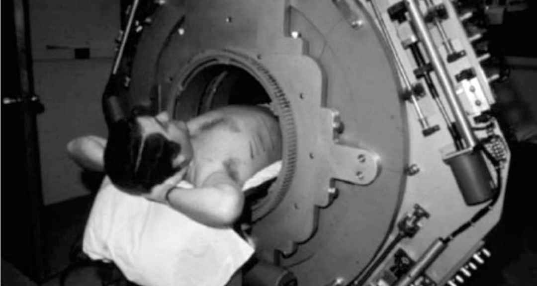 1953年,Brownell和Sweet開發(fā)了一種用正電子發(fā)射的放射性核素,對腦瘤進(jìn)行定位的多探測器儀器。該設(shè)備的工作原理是:將病人相對于探測器移動(dòng),每當(dāng)有重合的事件發(fā)生時(shí),就用筆在紙上做一個(gè)標(biāo)記。