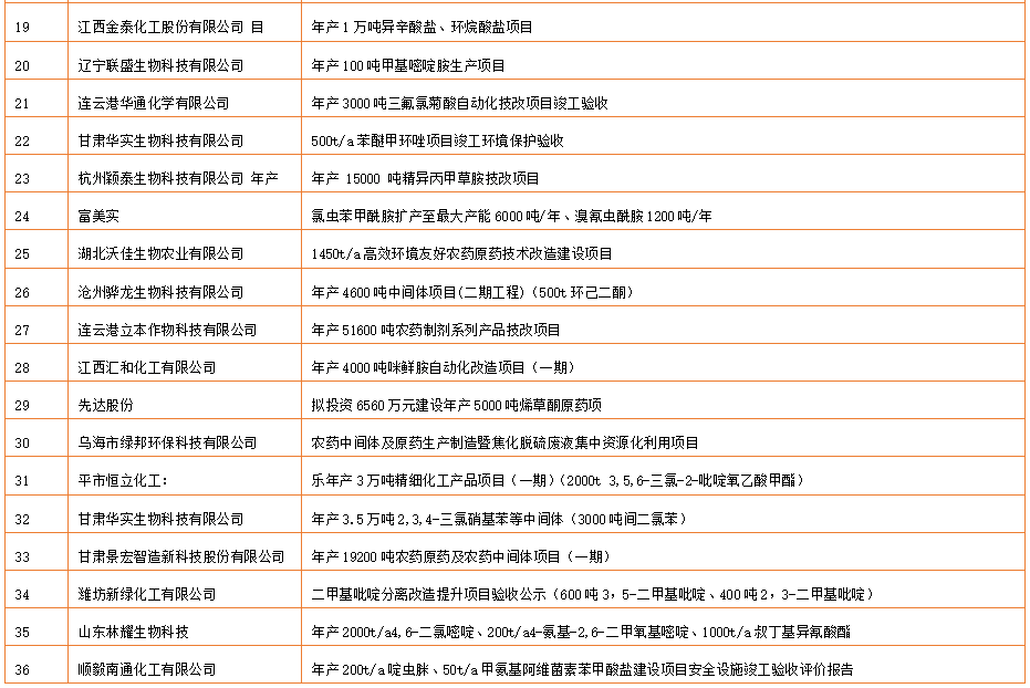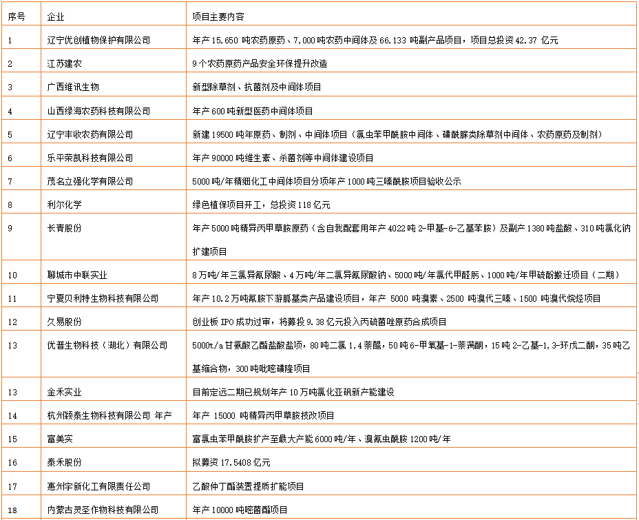 4月份我國農(nóng)藥原藥(中間體)項(xiàng)目匯總
