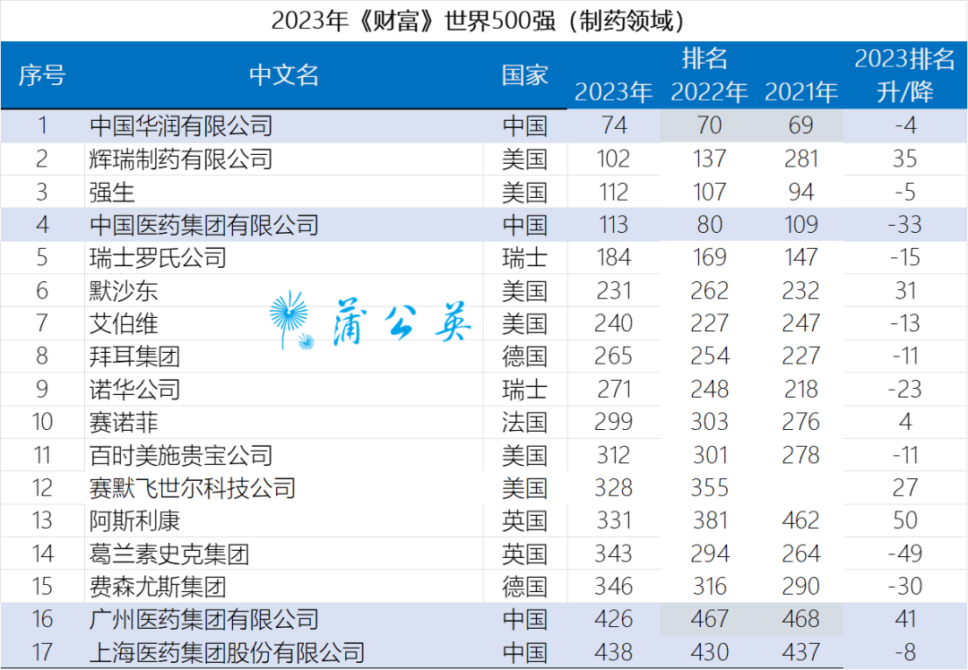 8月2日,2023年《財富》世界500強(qiáng)榜單發(fā)布,17家制藥公司上榜,其中,4家中國藥企榜上有名:中國華潤有限公司、中國醫(yī)藥集團(tuán)有限公司、廣州醫(yī)藥集團(tuán)有限公司、上海醫(yī)藥集團(tuán)股份有限公司榜上有名。廣藥集團(tuán)排名上升最快:廣藥集團(tuán)連續(xù)第三年上榜,排名年年上升,今年位居第426位,比去年排名躍升41位,已經(jīng)連續(xù)兩年在榜且排名穩(wěn)步上升。 中國醫(yī)藥集團(tuán)有限公司:113名,比去年下降33名; 上海醫(yī)藥集團(tuán)股份有限公司:438名,比去年下降了8名。 上榜的跨國公司:第102位,輝瑞;第112位,強(qiáng)生;第184位,羅氏;第231位,默沙東;第240位,艾伯維;第265位,拜耳;第271位,諾華;第299位,賽諾菲;第312位,百時美施貴寶;第328位,賽默飛;第331位,阿斯利康;第343位,葛蘭素史克;第346位 費森尤斯。輝瑞,成為全球最大的制藥公司:輝瑞制藥有限公司排名上升35位至第102位,成為全球最大的制藥公司,利潤為31,372百萬美元。中美差距明顯:以輝瑞為代表的10家美國制藥企業(yè),平均銷售收入982億美元,平均利潤114億美元。上榜中國企業(yè)中被納入藥企行業(yè)只有中國醫(yī)藥和廣州醫(yī)藥兩家企業(yè)。這兩家企業(yè)平均銷售收入647億美元,平均利潤7.1億美元。兩項指標(biāo)遠(yuǎn)遠(yuǎn)低于美國企業(yè)。利潤如此之低,企業(yè)難以投入足夠資金用于創(chuàng)新。生物醫(yī)藥行業(yè)是關(guān)系人類未來發(fā)展的行業(yè)。上榜中國企業(yè)與美國企業(yè)的差距表明,我們還有很長的路要走。
