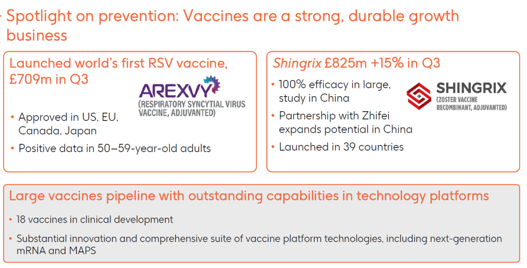 2023年前3季度,全球領(lǐng)軍制藥企業(yè)GSK(葛蘭素史克)的疫苗整體表現(xiàn)尤為強勁,銷售總額達到32.2億英鎊。