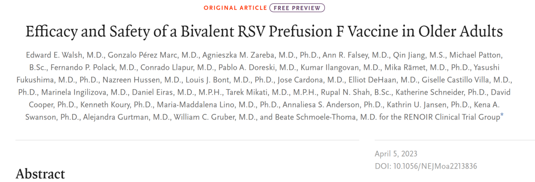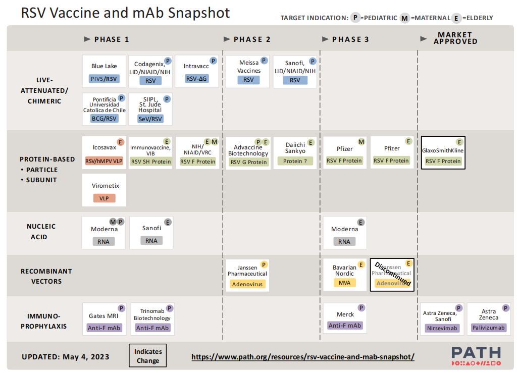 2023年5月31日,美國FDA首次批準Abrysvo(RSVpreF,PF-06928316)上市,用于預(yù)防60歲及以上人群出現(xiàn)由RSV引起的下呼吸道疾病(LRTD)。