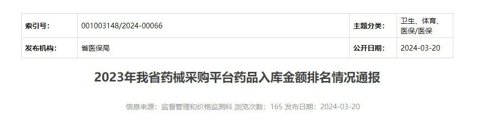 今日,浙江省藥械采購中心發布《2023年我省藥械采購平臺藥品入庫金額排名情況通報》,根據入庫金額由高到低排序,公布了TOP200的藥品及企業名單。(見附件)