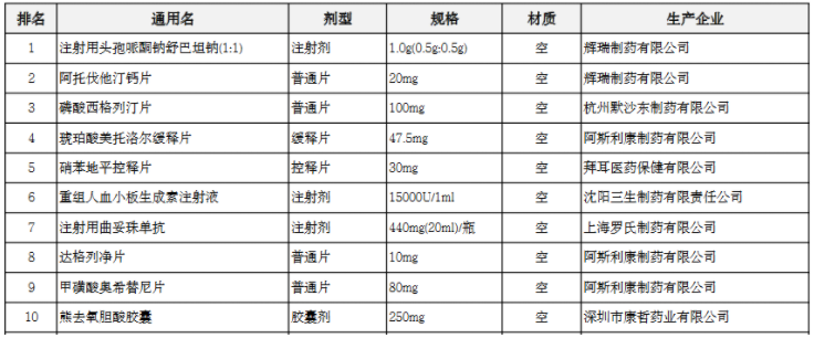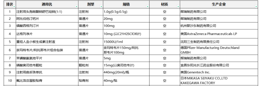 另外,阿斯利康生產的達格列凈片從第八上升到第四。
